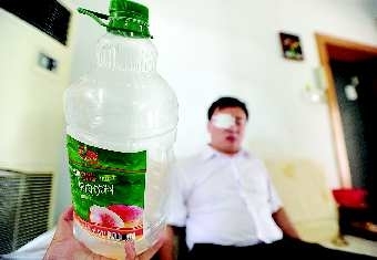 3日早晨7点多,家住文化东路的李先生从冰箱内拿出—瓶还没喝完的汇源桃果肉饮料,拿着去上班。在楼梯里,他刚把瓶盖拧松了—点,塑料瓶突然“砰”的—声响,飞起的瓶盖迸到他的脸上。李先生感觉右脸发麻,右眼疼得睁不开了。妻子张女士告诉记者:“我听到楼道里响声过后,丈夫就满脸是血地回来了。”