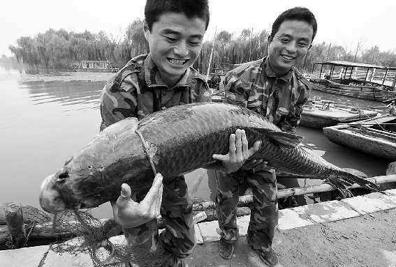 江北水城集团水产公司杨经理介绍,湖内有30多种鱼,超过100斤的青鱼还是首次捞到。2005年到2008年,东昌湖制定三年休渔期,之后边放养边捕捞,近两年来,湖中经常捞出个体较大的鱼。