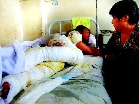 他们的主治医生告诉记者,张某妻女的情况各不相同,但是都较为严重,尹某烧伤面积没有孩子的面积大,但是烧得较深,而且会影响以后手的功能。孩子的受伤面积为27%,为深2度烧伤。