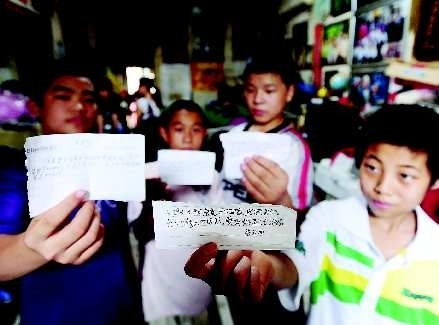 4日中午,记者来到郑承镇的家里,7个孩子都在屋里写作业,桌子上还有午饭剩下的饭菜。“这是柳奶奶给我们做的,中午吃不了,晚上热热再吃。”15岁的刘磊告诉记者。在知道郑大爷现在听不清楚,也说不清楚话后,刘磊提议,要给大爷送上一份特别的礼物———在纸条上写上自己的心里话,汇报自己的学习生活情况,表达自己的想念和祝福。