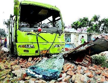 4日下午,一辆从济南到德州的大客车开出长途汽车站不远,就失控拐向路边一小区撞倒了围墙。