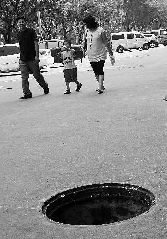 5日,记者在文化中路—路段发现,路上—下水道井盖丢失,附近没有任何提醒路人危险的提示牌。井深—米多,除污水外,井内有各式垃圾,还有两根尖利的木棒。