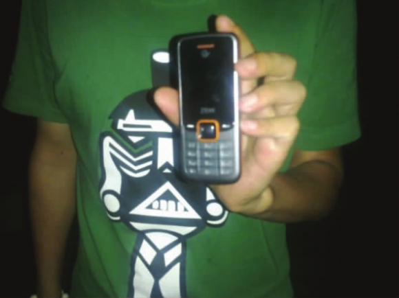 图为新生领取的电信手机,据悉,这种手机价格在200元左右。