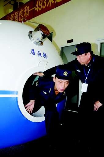 9月6日下午,中国海军潜水员李刚顺利出舱。孙利摄