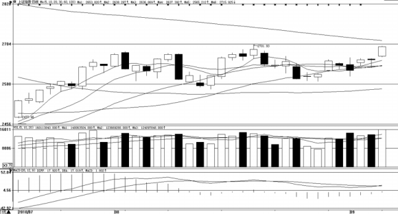 盘口显示,周一早盘,沪深两市股指借助利好提振大幅跳空高开,沪指开盘直接站在了上周压力位—2665点上方,随着金融、煤炭、钢铁、地产等权重板块的大幅崛起,沪指向2700点发起冲击。但因“二八”效应再度出现,前期热门的中小盘受到抛压盘的打击,纷纷大幅杀跌,拖累中小板综合指数出现明显地跳水。受此影响,沪深两市主要股指也出现一定回落,沪指在回撤2665点支撑后再度崛起,美中不足的是量能出现明显的萎缩。午后,股指承接早盘的走势继续上行,沪指成功突破120周线,并一度逼近2700点整数关口,最终以全日次高点收盘。
