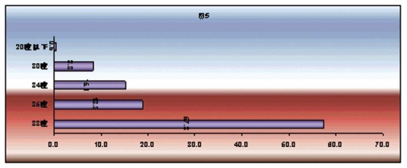 在低度浓香型白酒产品的选择上,白酒的酒精度是一个重要的影响因素。本次调查发现,在消费者实际饮用过程中,饮用最频繁的低度酒酒精度是38度,选择38度的白酒的消费者所占的比例达到57.3%(如图5所示),其他依次是35度的18.8%,34度的15.1%,30度的8.3%。而根据消费者的消费意愿,有46.8%的消费者认为低度浓香型白酒的酒精度应该在35-40度之间(如图6所示),39%的消费者认为在30-34度之间最为理想,选择30度以下的消费者约占总样本的