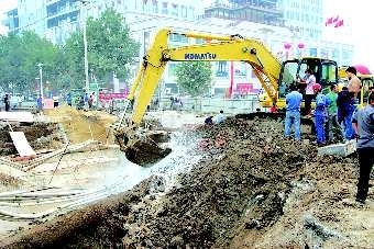 9月5日,城区阜桥口处施工现场的—根供水主管道被挖断,路槽中很快便积满了自来水,这已不是第—次自来水管道被挖断了。济宁中山公用水务有限公司管网运营部谢经理告诉记者,今年太白楼路改造开工以来,因自来水管道被挖断,该公司派人维修的次数就超过了180次,其中不乏同地点重复维修,刚修好后儿天再次被挖断的情况。