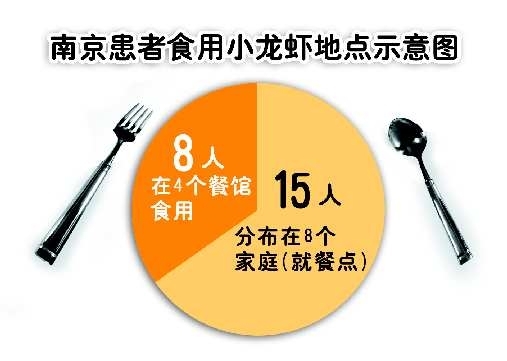 南京市食品安全委员会办公室主任华文介绍,截至7日12时,全市共收治与食用小龙虾相关的横纹肌溶解综合征病例23人例。经过初步流行病学调查,23人的就餐地点高度分散,其中15名患者分布在8个家庭(就餐点),另有8人在4个餐馆食用。23名患者均有全身肌肉酸痛症状,并伴有肌酸激酶、肌红蛋白明显增高,临床诊断为横纹肌溶解综合征,经治疗,已有22人治愈出院,还有1人住院治疗,目前病情稳定。