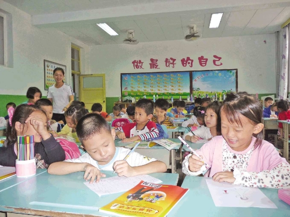 山师附小一年级7班的班主任吕娜告诉记者,每节课40分钟,相比高年级的学生,这些一年级新生一般都很难坚持下来,上到20分钟时,学生趴着的、歪着的、四处乱看的、说话的随处可见。“所以我们专门设置了课中操,让孩子活动一两分钟,来保证下半节课他们能集中注意力。”