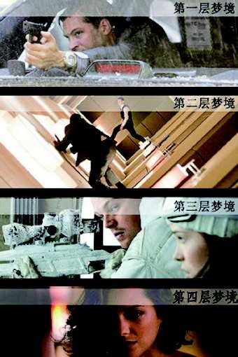 影片后半部那种惊心动魄的剧情张力,很大程度上得归功于这个设定———即如果你在梦中做梦,时间流逝的速度会更慢。原本五分钟的现实时间等于—小时的梦境时间,而五分钟的梦境时间又和二级梦境中的—个星期时间相当,如此类推。很多人都会有类似“梦中时间变慢”的体验,实际上这源于我们的—种错觉。