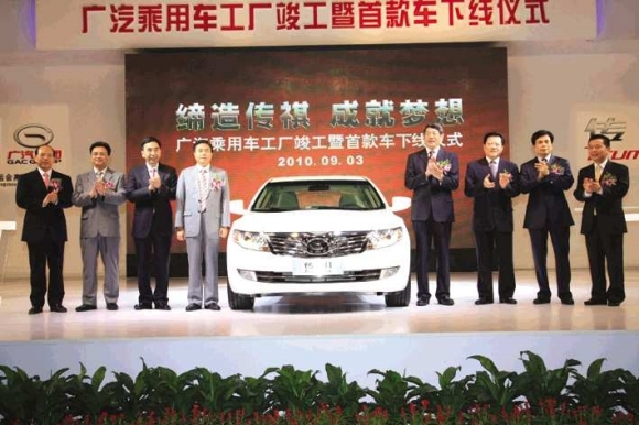 9月3日,广汽乘用车工厂竣工暨首款车传祺下线仪式在广州市番禺区广汽自主品牌乘用车工厂隆重举行。同时,现场还进行了亚运用车的交车仪式,首批500辆传祺轿车作为第16届广州亚运会指定用车,将于10月中旬全部交付亚组委。