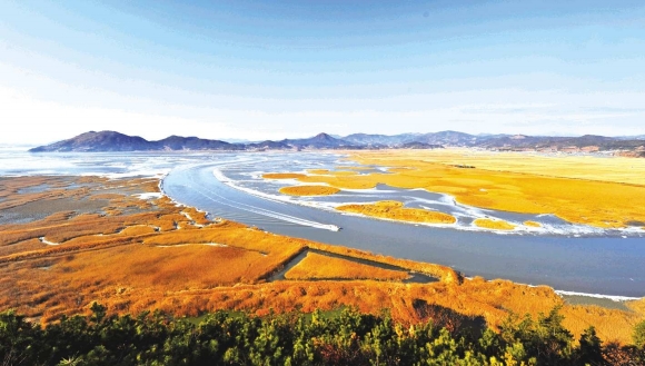 顺天湾位于韩国全罗南道、朝鲜半岛南部海岸,面积约75平方公里,拥有23平方公里的潮汐滩涂和2.3平方公里的芦苇群,是目前韩国最大的湿地保护区。