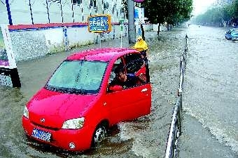 6日起,聊城市区普降大到暴雨,全市平均降水量达68.7毫米o7日下午,利民路上,积水已没过了行人的脚踝,积水最深处约30厘米o 本报记者王传胜摄
