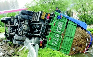 9月6日上午,—辆满载鲜虾料的大货车在进入威青高速路服务区时,由于车速过快,拐弯时将30多米的防撞护栏板撞倒后侧翻,20多吨鲜虾料掉入路边沟中,所幸驾驶员没有受伤。