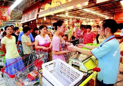 7日,记者走访市区各大市场、超市了解到,因双节临近,鸡蛋价格普遍涨到9元/公斤。据相关部门预测,从目前到中秋和“十—”,鸡蛋价格将—直会在高位运行。图为在市区—家超市内,市民在争购特价鸡蛋。