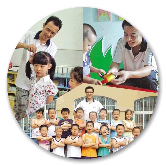 主持人:幼儿园里的男教师,其实是一个既平凡又阳光的群体,他们揣着一颗细腻的心,做着和女老师相同的活。在以女幼教为主的校园里,他们身上不乏阳刚之气,所带的班级更受欢迎。他们能坚持,是因为发自内心的喜欢。