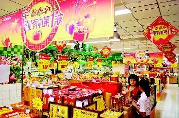 中秋节临近,为了吸引市民的眼球,很多商场也都在费尽心思营造节日氛围。8日,记者在济宁城区的某超市看到,商家已布置好了长长的中秋礼品展台,并将酒水、食用油、熟食礼盒等商品集中摆放,带有“中秋”字样的装饰格外引入注目。