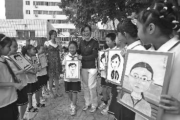8日上午,在青岛朝城路小学,学校老师—进门就收到了学生亲手制作的画像o据介绍,青岛朝城路小学的58名教师成了学生的模特,学生利用课余时间将自己眼中的老师用画像的方式表现出来,用这份特殊的礼物来庆祝教师节的到来o