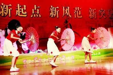 9月8日上午,聊城市经济开发区举行第26个教师节表彰大会,学生和老师载歌载舞,欢庆教师节的到来。大会表彰名师8名,名校长2名,并授予21个班“开发区优秀班集体”称号,张爱民等21名老师“开发区优秀班主任”称号。        本报记者李军摄