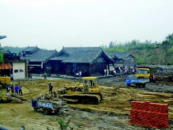 在影视城内太尉府的西南方向,记者看到着火后的现场一片狼藉,地面被熏黑了一片,之前几座楼房已经没了踪影,只剩下了一些砖瓦和烧坏的木材留在那里,南侧还有一些积水漂浮着一些积灰。几台大型机器正在清理着现场,有一些工作人员还在南侧用大块砖砌着墙,随着现场的不断清理,还不时地冒出几缕青烟。