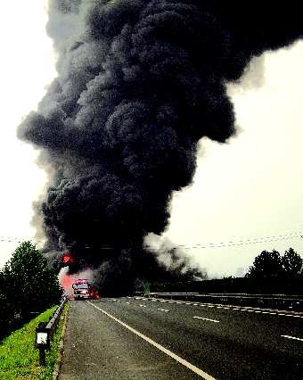 本报济南9月9日讯(记者 杨传忠)9日下午4时33分,青银高速邹平段一辆小货车不慎追尾一辆大型原油运输车。一声巨响后,火球腾空而起几十米,货车司机被活活烧死。17时36分,14辆消防车轮番上阵才将大火扑灭。