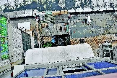 9日15时20分,记者来到长盛小区南区2号楼看到,2单元六楼一住户的阳台窗户仍然开着,在其正下方的一楼车棚顶的石棉瓦上有一个半米见方的洞。住在五楼的王先生告诉记者,下午两点半左右,他突然听见“砰砰”两声响,“我以为两口子吵架扔东西,就没怎么在意。”