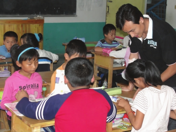 曹荣锋说,数学“枯燥无味”,他上学时就很不喜欢复杂繁琐的数学课。而如今怎么讲好数学课成了他的“大问题”。多年的教学,还真让他摸索到一个好法子———讲故事。“比如在讲循环小数,这个概念很抽象。于是我就给他们讲“山里有座庙、庙里有个老和尚……”曹荣锋就这样一直说,学生们听着故事,不由自主的笑了。通过一个个这样的故事记忆和学习数学知识,学生们的印象就很深刻。