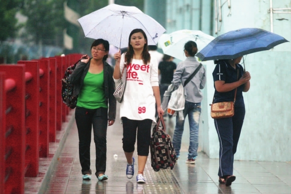 8日,在潍坊市胜利街上,市民正撑着伞行走在雨中。据潍坊市水文局介绍,受北方冷空气和西南暖湿气流共同影响,自6日起潍坊市普降中到大雨,降雨将持续到本周四,未来一周内以多云天气为主。受连日降雨影响气温骤降,最低温度只有20℃,医生提醒市民气温骤降一定要注意保暖,以免引发感冒。  本报记者 孙国祥 摄影报道