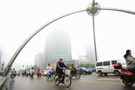 9日,在潍坊市东风街上,弥漫的雾气使得远处的建筑消失不见。连日的降雨使得空气湿度增加,空气中的雾气把市区笼罩。医生提醒市民,这种天气不利于污染物的扩散,患有呼吸系统疾病的人应该减少外出,以免加重病情。