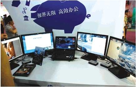 一台机子可同时连接四个显示器,共五个屏幕,使用时可多屏操作也可合成一个大屏幕,鼠标可以直接在四个屏幕来回移动。可运用于办公室,尤其是在设计、制造、医疗等行业应用中,都可发挥出强有力作用。