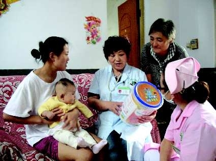 9月9日上午,银雀山街道社区卫生服务中心妇产科的医生和护士来到梨杭社区,向家庭困难产的妇们赠送奶粉,并为他们讲解了科学喂养知识。据介绍,此次共为银雀山街道共6位困难产妇准备了18罐奶粉。