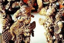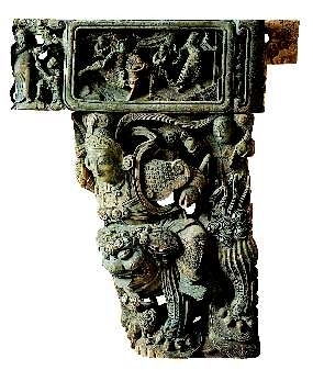 “人物题材是‘牛腿,的精华部分。”老张指着他收藏的“和合二仙”、“刘海戏金蟾”等题材的老“牛腿”说。一些历史典故、戏曲人物、民间神话和文人雅士形象乃是木雕的精华篇章。尤其一些清雅脱俗、具儒者之风,有文人画风格的木雕“牛腿”,弥足珍贵。如“琴棋书画”、“梅兰竹菊”、“连中三元”、“郭子仪上寿”、“温公警忱”、“状元及第”等。浙江东阳有一座民宅的主人,为了满足母亲看戏的嗜好,居然把整幢民居遍雕成戏曲故事,而把屋檐上的“牛腿”个个都雕刻成为戏中角色。