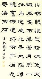 对祖国深沉的爱,对祖国传统文化的炽热情感,是成就何骏书法艺术的又一成因。在《何骏书法集》中,有数量众多的歌颂祖国壮美山河的唐宋诗作,如李白的《早发白帝城》、杜甫的《望岳》、杜牧的《江南春》等等,这些名篇佳作或潇洒飘逸的行草,或工整精致的楷书,或笔致高雅的汉隶,无不凝聚着书法家对祖国山河深沉爱恋的爱国主义情怀。