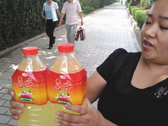 “你看,瓶里飘着这样发霉的絮状物,恶心死了”,12日,家住寿光的王女士拿着从商店购买的汇源喜庆果汁告诉记者, 9月8日,她从寿光一家商店花了900元购买了30箱汇源喜庆果汁,准备给弟弟结婚时用,但拿回家打开箱子发现,竟然有13瓶果汁中漂浮着发霉的絮状物。