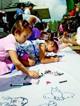 11日,北创画室在威海市博物馆举办了“”的主题画展,馆内的画作、手工艺品全部出自北创画室的学员之手。图为小学员们认真地在现场作画。本报记者王帅李彦慧摄