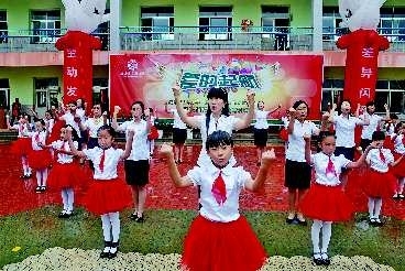 近日,威海市古寨小学举行了隆重的“2010年‘爱之旅’启动仪式”。该活动以寓教于乐的方式,从学校、家长、学生三个视角对古小阳光教育进行了细致深入的解析。图为孩子们用手语表演《感恩的心》。