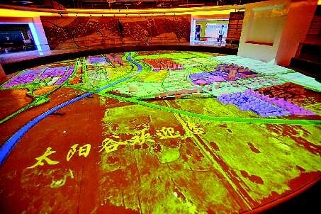 太阳能博物馆产品材料陈列馆里的数字化全景沙盘,将太阳谷东西区的整个建筑群全面立体地呈现,让游客可以直观地了解到整个太阳谷的布局与美景。多媒体动画技术的运用,可以使整个沙盘“动起来”,游客可以“体验”汽车在立体沙盘上“奔跑”的奇妙场景。 本报记者戴伟摄影报道