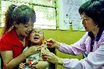 在德城区卫生监督所,据工作人员介绍,此接种点只接待3岁以下的儿童。托幼及学龄儿童在儿童所在学校内临时接种点接种疫苗。记者在现场看到,带孩子来打疫苗的家长挤满了屋子,有些孩子在家长鼓励下很勇敢,但不少孩子还是被这细针吓哭了,往往一个孩子一哭就带动其他胆小的孩子也跟着哭起来。