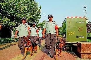 10日,德州市公安局德城公安分局保安大队派出护卫犬巡逻组,在城区街道不间断巡逻,加强城区路面巡逻防范工作。本报见习记者王金强本报通讯员李丽丽付艳强摄