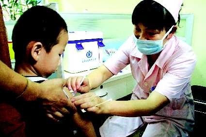 9月12日,在市妇幼保健院接种室,许多家长带着孩子前来接种麻疹疫苗o据了解,从9月11日起,全市150万儿童将陆续接种免费疫苗o