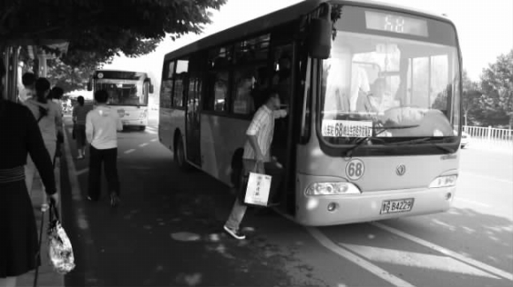 12日下午4点15分,记者在位于胜利街金马路的公交站点看到,去峡山的68路公交车上已是满载乘客,不少乘客还在继续上车,记者了解到,68路车自5月26日增设以来,一直保持着“火爆”的局面。