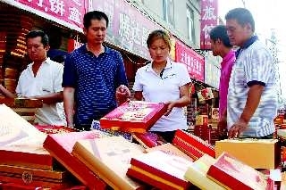 13日,市民在批发市场挑选月饼礼盒o中秋节将至,不少市民在准备送礼的月饼的同时去挑选漂亮月饼礼盒,送人又实惠又好看o—位店老板说,最近月饼礼盒卖得挺好o 本报记者邹俊美摄
