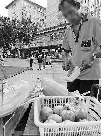 13日下午,威海市区步行街依旧熙熙攘攘,各大小吃店前都围着前来选购小吃的市民,其间还有不少流动摊贩推着水果车缓缓而过。乍一看,路面很是清洁,但在一些小角落、缝隙里,竹签仍随处可见。步行街两侧,麻辣串、烤鱿鱼、烤肠、烤鸡排等小吃摊点无不使用竹签,就连切块出售的西瓜、哈密瓜等也都用竹签、木筷串起来卖。