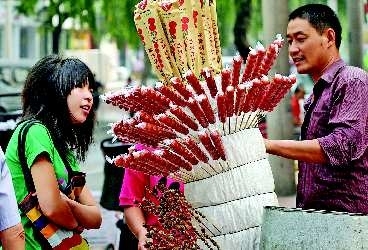 随着中秋节的临近,威海街头的—些风味小吃也渐渐多了起来,冰糖葫芦、糖炒栗子等让市民大饱嘴福o