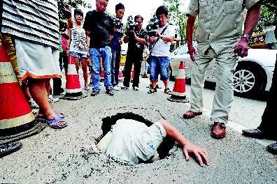 “昨天,这里出现一个鸡蛋大小的洞。”事发后,一位细心的市民说。