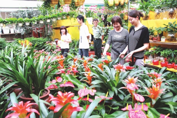 14日,在虞鑫花鸟市场内,不少市民前来选购花卉。据了解,中秋节和国庆节临近,花卉市场也跟着活跃起来。