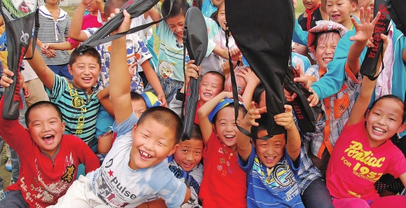 “加油,加油……”操场上传来了同学们震耳欲聋的加油助威声。14日上午,体育器材送达泰山区省庄镇东苑庄学校后,学校上体育课的学生就来了场声势浩大的拔河比赛。