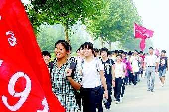 “女儿才13岁,有点不放心。”在拉练队伍的最后,家长付女士推着自行车跟着,她是唯一一个全程陪同的家长。她说,女儿小珂是高一生,今年13岁。付女士为方便督促孩子,她骑着女儿的自行车上了路,跟在队伍最后面。