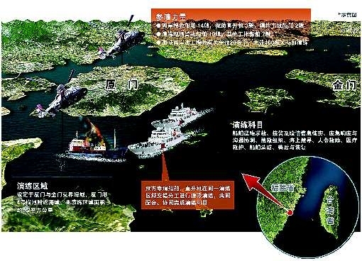 据新华社电记者15日从国台办例行新闻发布会上获悉,“2010年海峡两岸海上联合搜救演练”将于9月16日上午在厦门、金门附近海域举行。这是两岸首次共同开展全方位海陆空立体搜救演练。