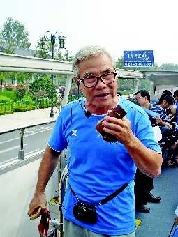15日上午9时许,27位候选者整装待发,游777还没有开动,—些“老济南”就已换上表演服装。旅游车徐徐启动后,各位精神抖擞的老人依次上场表演,评委现场打分。高长禄老人手拿快板登上敞篷车的二层开始表演。—段说唱快板《72名泉》尾声刚落,乘客们即高声叫好。靖树华表演的《话说济南府》声情并茂,还将济南的老街巷串进歌词唱起了小曲,征服观众的同时也征服了现场的7名评委。